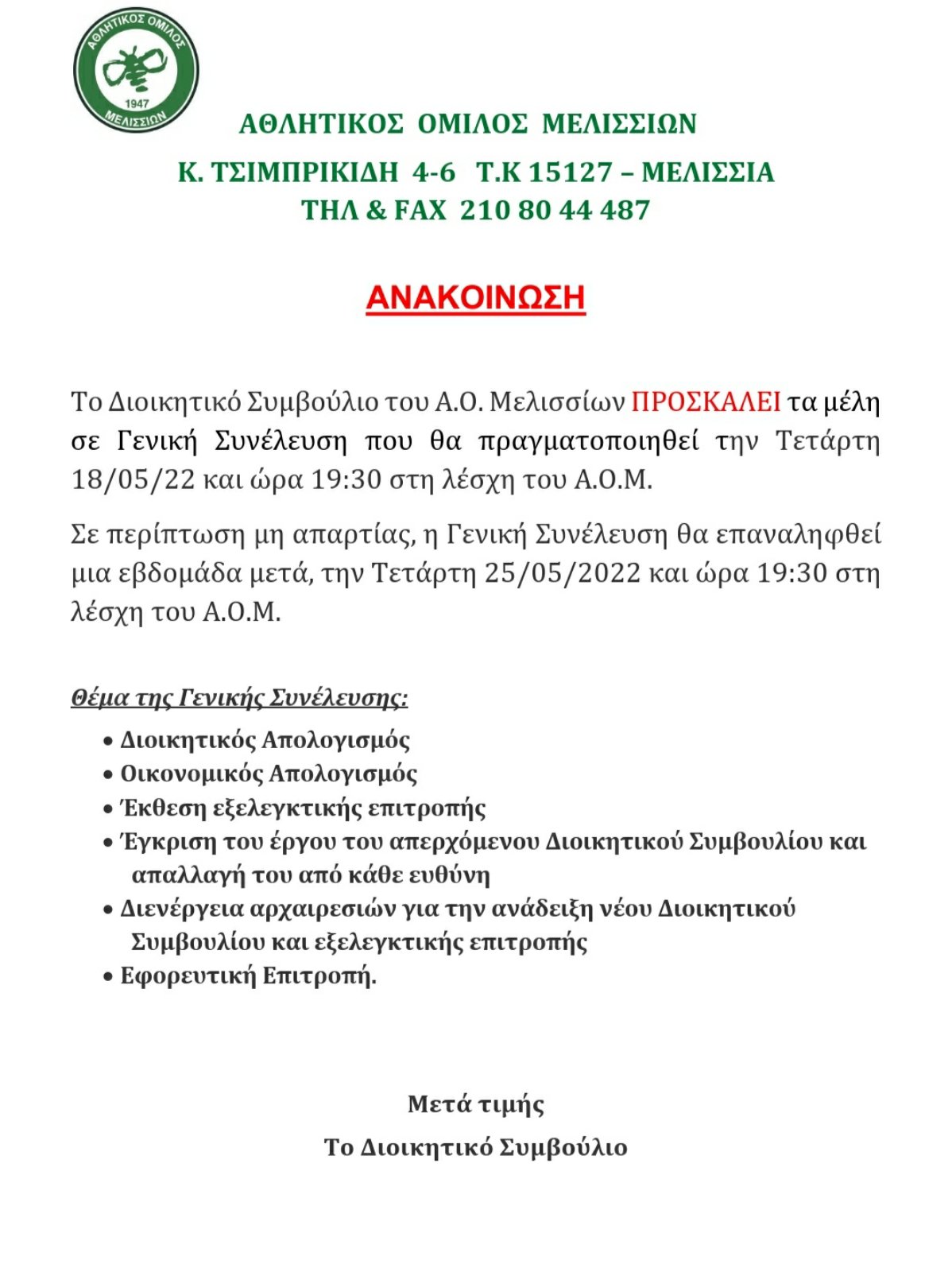 ΑΝΑΚΟΙΝΩΣΗ 9/5/2022
